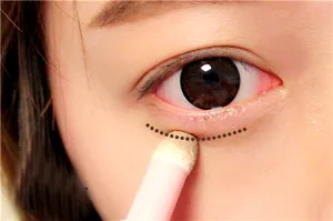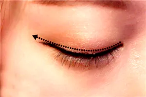 6、用卧蚕笔的深色笔头在下眼睑图示处轻轻画一条阴影,打造卧蚕效果。
