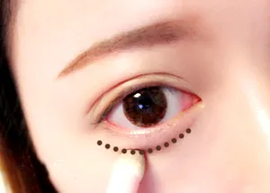 4、接着用卧蚕笔在下眼睑处轻轻的涂抹一层。