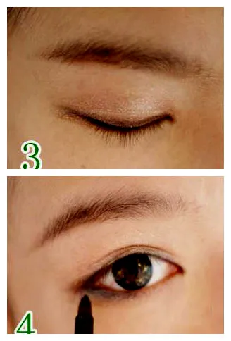 STEP3:用小号眼影刷沾取适量黑色眼影,在睫毛根部上方画出一条眼线。