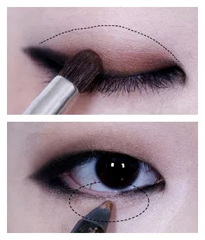 STEP5:用大地色系的眼影晕染上眼线往上眼窝的位置。