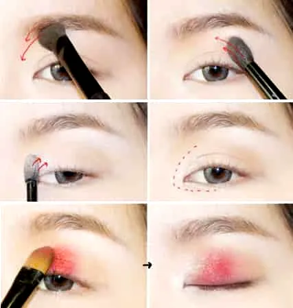 步骤4:用眼影刷将草莓红的眼影向两边稍微晕染开。