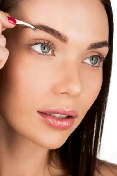 4、紧接着用棕色染眉膏先逆着眉毛的生长涂刷,再顺着眉毛的方向涂刷,这样的眉妆比较完整。