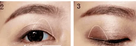 步骤4:使用珠光白色眼影在眼中间的位置晕染,可提亮眼中间的区域。