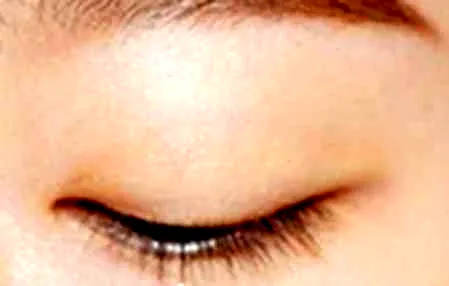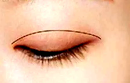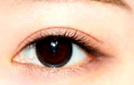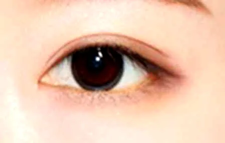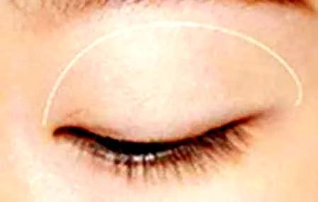 步骤4:再用肉粉色眼影在双眼皮褶皱的位置晕染,突显双眼皮。