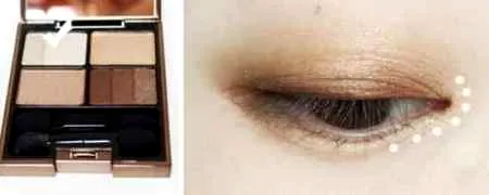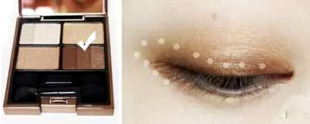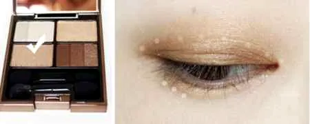 步骤一:上面用的是佳丽宝LUNASOL日月晶采影炫立体眼影打底。