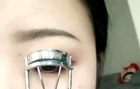 步骤十:把睫毛夹用吹风机加热一下,然后分三次夹睫毛。第一次从根部夹起,停留三十秒。第二次从睫毛中段夹起,停留三十秒。最后一次从根部夹起后慢慢拉出来。这样夹出来的睫毛比较卷翘又持久自然。