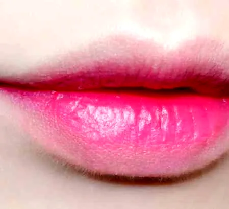 第十步:先用浅粉色唇膏涂在嘴唇中间,用刷子沾取深一色号的唇膏涂在嘴唇**,更得整个嘴唇涂抹饱满。