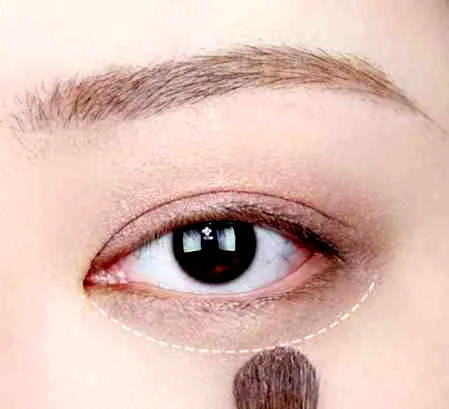 第五步:用浅棕色眼影涂在整个下眼睑处,注意与眼尾的衔接。