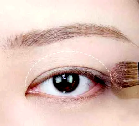 第四步:选择浅色眼影,铺满整个眼窝作为眼部打底。