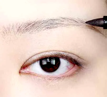 第二步:用水性眉笔将眉毛轻轻补充完整。