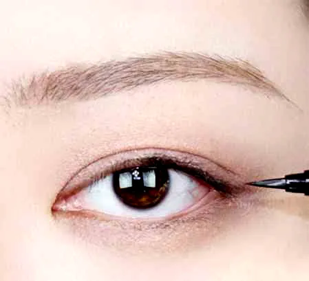 第六步:之后先用眼线液笔在眼尾处描出眼线。