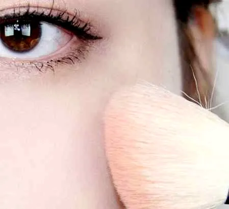 第九步:用刷子沾取珊瑚粉色的腮红刷在苹果肌上,不要刷太多哈,太多就不自然了。