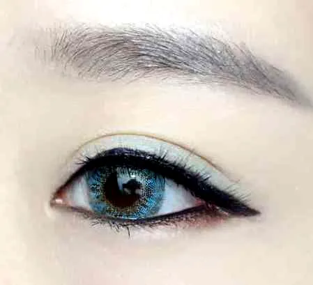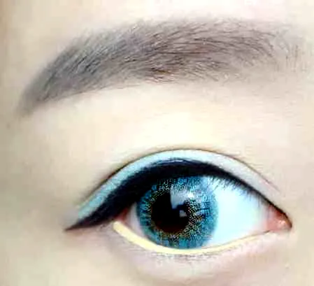 一般的下眼线是有黑色眼线笔涂抹在眼尾的眼睑处,与上眼线衔接。这样的画法虽说有放大眼睛的效果,但效果不大,用色上较硬。