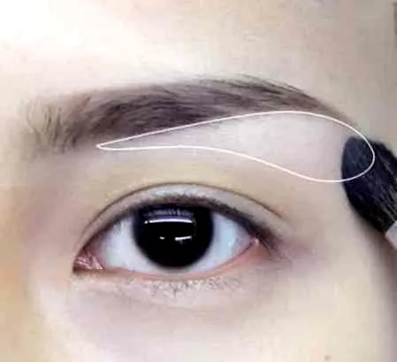 第二步:使用含有少量珍珠或没有珍珠的象牙色阴影,给眉骨部分增加亮感,为了让越接近前额的地方自然过渡,请注意调节**大小。