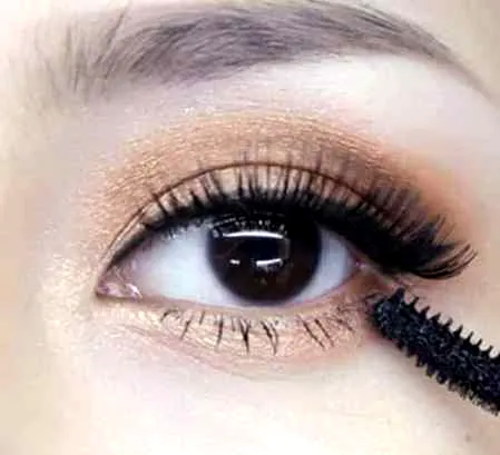 第十步:在睫毛胶完全干燥后,用睫毛夹把自己的睫毛与假睫毛一同卷上,然后用睫毛膏将上下睫毛一同卷上。