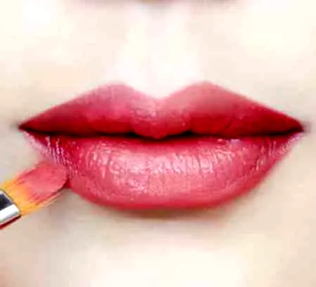 第十四步:使用唇刷将界限变得自然,注意不要让嘴唇**的珊瑚色变浑。