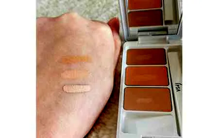 遮瑕膏的三色颜色分别是咖色、米色和米**,在手背上的显色都比较明显,咖色对于一些妹子可能颜色太深了,可以和其他两个颜色调合一下再使用。