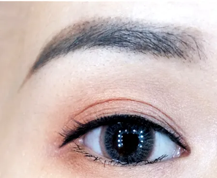 第四步:用棕色眼线膏画出一条自然下垂的眼线,同时填补内眼线。