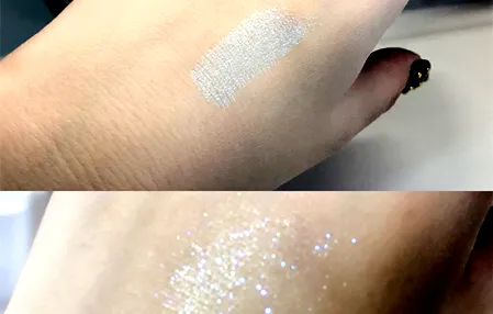 质地是润泽FROST,非常水润不拔干的质地。闪片细腻好涂抹,用来叠擦再适合不过。