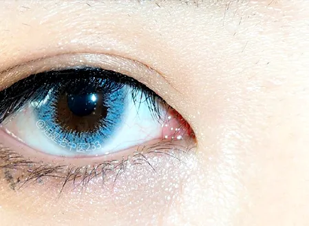 第二步:首先用手指抵住,让眼头空白漏出来,笔尖朝眼球的方向笔身朝向鼻子,斜着向下拉出一个小眼头。上下都如此,想要效果更尖的可以再描绘下内眼线。