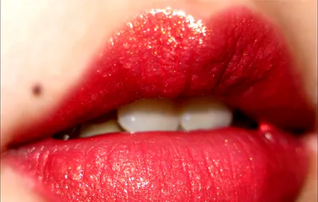 LUSTRE质地,润泽盈彩,滋润挂,不显唇纹。在图中也能看出,有明显的金闪,上唇后细看还是挺明显的。
