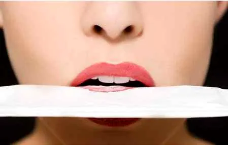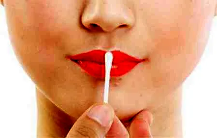 step 3:嘴唇微微张开,用沾有卸妆油的棉签,清理唇纹的彩妆残留。