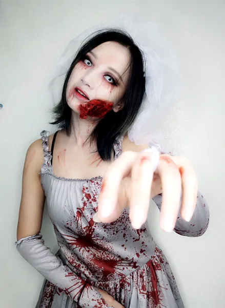 到了万圣节,丧尸妆容任然是主流趋势。这套妆容需要搭配服饰及美瞳,想要走丧尸风格的女生记得提前购置好美瞳哦~大块的伤口不会画,可以让专业的化妆师帮帮忙。