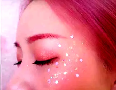 如果**技术好的话涂亮片妆也是很好看的,不过在化亮片妆的时候一定要配好眼影,眼影对整个亮片妆也起了很大的作用,肿眼泡单眼皮不能选择红色系和饱和度高的颜色,最好是大地色系的,因为亮片很散,所以肿泡眼小面积化是完全没问题的。