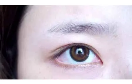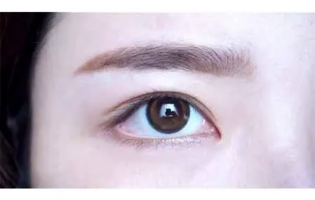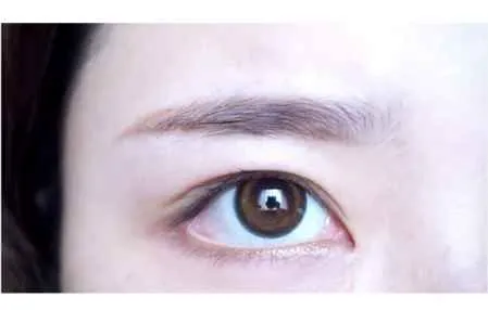 第三步:用扁平的眉刷沾取少量的眉粉,先填满轮廓,第一遍不要套多眉粉,因为很多新手党掌握不了眉毛需要“前浅后深,上浅下深”的原则,为了防止失手,先全部浅浅的填上色。