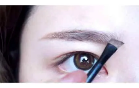 第二步:用扁平的眉刷沾取适量的眉粉,沿着自己的眉形画一个轮廓出来,如果眉尾比较稀疏的宝宝,可以适当的拉长眉尾。