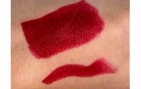 偏紫调的酒红色,白光下玫调明显点,黄光下没有那么明显,是非常适合秋冬的颜色,而且这个颜色上唇后超级显白,虽然有点偏紫调,但是黄皮的宝宝也是可以用的。