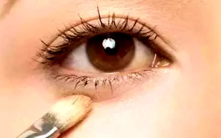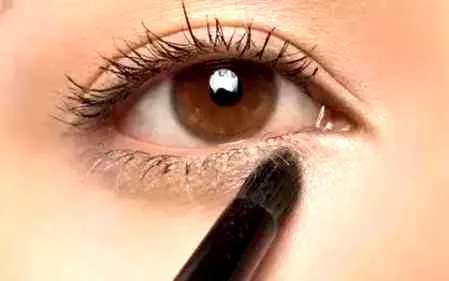 ▲ Step 4:打造浅色阴影。为了避免卧蚕看起来浮肿,卧蚕下方处以浅棕色眼影勾勒下缘。