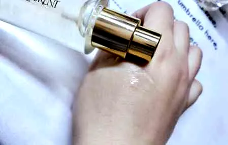 这款妆前外观和娇兰的金钻妆前乳有些相似,都是玻璃瓶包装,承袭了ysl一贯的华丽金色元素的盖子,内里的凝胶质地混合着金箔。玻璃瓶身很有分量感,放在梳妆台相当的赏心悦目!