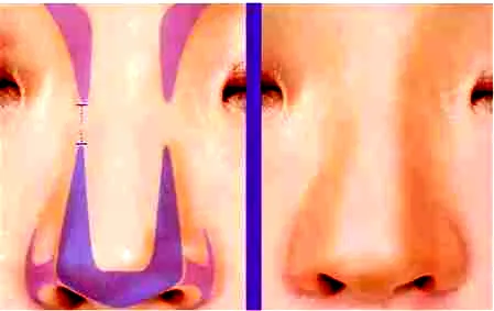 把视觉重点集中在鼻梁上而忽略了鼻头处