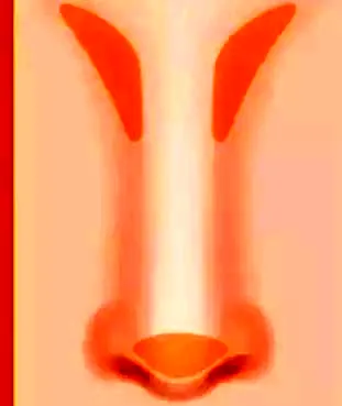 沿着眉头至鼻头两侧扫上连续不断的阴影,