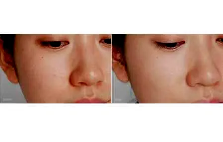 原本脸上是有一些小印记,还有毛孔粗大,肤色不匀。使用完后,瑕疵基本都被遮住了,鼻翼的黑头部分遮盖的七七八八,上妆完后脸部肌肤呈现完全哑光的效果,而且贴合度很高,没有拔干,妆效非常自然。