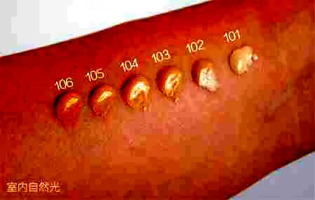 将每个色号都涂一些在手臂上,可以看出来延展性很好,而且遮瑕力很不错,基本上看不到原有的肤色了,而且没有任何的反光的感觉,真的非常的哑光。