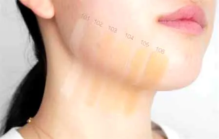 101和102都是比较适合偏粉皮肤的,101为最白色,102是自然偏白色,103和104都是比较适合黄皮的,也是较为大众的颜色 ,103比104多一丢丢粉调,105和106都是比较深的黄调,106比105更深一点点。