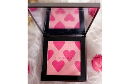 这款也是一款颜值非常高的腮红,爱心是很温柔的粉色,颜色和粉质并不会重手,应该叠加几次就很棒了~浅**域有些提亮的感觉,浅粉偏白还有微闪星~刷子混合两种颜色会很好看,效果就是很有元气不会出错的颜色。