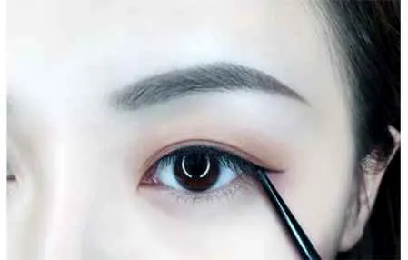 第三步:自然勾勒出眼尾,轻微上扬,下手要轻,画错的地方可以用棉签修正。