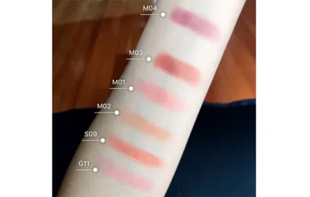 橘朵的眼影整个系列颜色都非常好看,m03砖红色搭配s09非常好看,有一种橘子汽水的感觉。粉质方面,粉压的比较实,不会非常飞粉,晕染度也很好!人鱼姬色也是非常美丽,推荐s07这个色号。