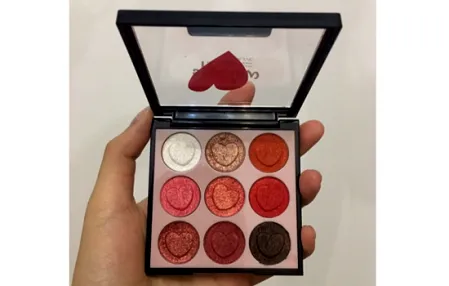 这盘眼影有哑光有珠光有闪片,外包装也是很有**心,但从配色上来看9色眼影盘总共有4个色号,但是颜色变化不大,尤其是03和04.湿粉的粉质软软糯糯的,水分十足的感觉。有一点不好就是这盘眼影没有配镜子和刷子,好在比较容易晕染,持久度还不错,一天下来维持度还可以。