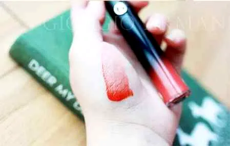 这支唇釉的颜色不是橙调也不是正红,而是非常好看的锦鲤色,再加上好看的金闪,上嘴有点油桃的那种颜色,金闪上嘴一点也不掉价也不low,只有在太阳的照射下才会显出来细腻的金闪~