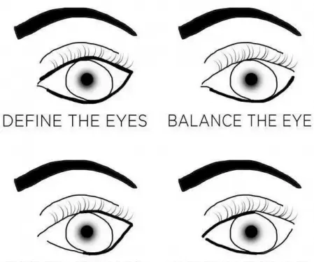 确定**眼睛形状,然后再画眼影!这是第一步,以搞清楚你应该如何画眼妆。