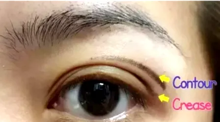 如果你想让**眼睛看起来更大,那么你可以将折痕阴影比你自然的双眼皮折痕高一点。