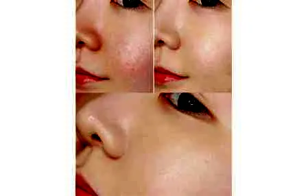 上妆可以看见有泛红、毛孔粗大等问题,面积也比较大。上妆后基本上肤色都被均匀地很好,瑕疵也基本都被遮住了,妆感也比较自然。