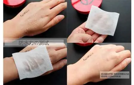 先喷一些水在手背上,在用化妆棉轻轻擦去,可以看见化妆棉上面没有粉底液残留,防水能力还是很不错的。