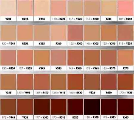 参考上面这张色卡。Y开头的是“冷色调”,R开头的是“暖色调”。然后你再根据自己肤色的深浅亮度来选择就好了。