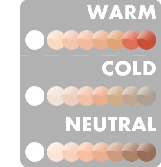除了色卡,很多品牌会把粉底分为“orche”、“ivory”、“beige"三个色系。碰到这种情况,你可以这样选择,“orche”适合“暖色调”肌肤,“ivory”适合“中性色调”肌肤,“beige"适合“冷色调”肌肤。