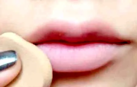 第三步:用指腹由内向外将唇釉轻轻拍开,推出自然的渐变效果。